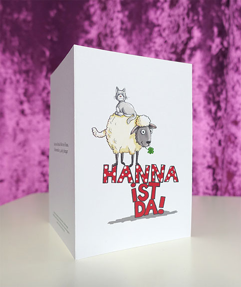 Beispiel individuelle Geburtskarte mit Glücksbringer-Motiv: Deckblatt mit Rückseite