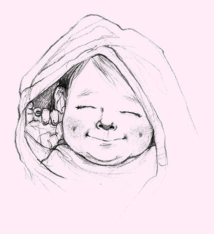 Zuerst fertige ich nach genauer Vorlage des Lieblingskuscheltieres (Foto) eine niedliche Illustration an.